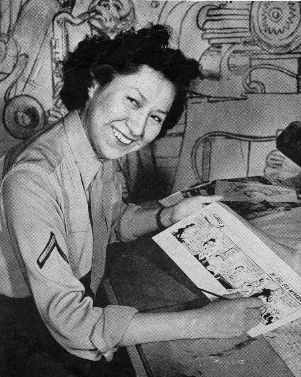 After winning a poster contest the U.S. Treasury Department sponsored for war bonds, Mirabal enlisted in the U.S. Army in 1943. A private, she became the WAC’s only full-time artist, drawing “G.I. Gertie” for “AIR WAC,” a U.S. Air Force newspaper, and painting murals for the Wright-Patterson Air Force Base where she was stationed in Ohio. She worked under muralist Stuyvesant Van Veen, who commissioned her to paint this dressing screen for his first wife, Frances, in 1944 (far right), the only such work she is known to have created. She was a sergant by the time she was discharged in 1946.
